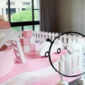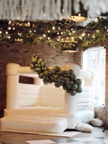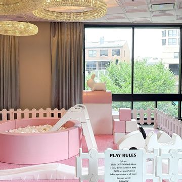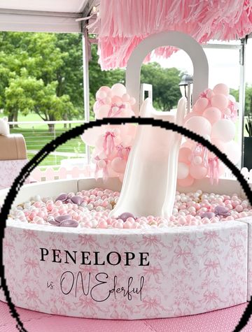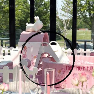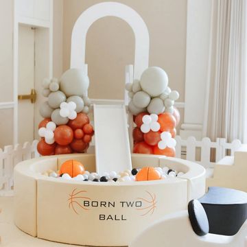 6' Ballpit with medium slide. Available in white/tan and plush pink.